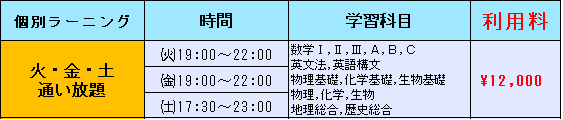 自分で決めた曜日、自由に利用可能!!